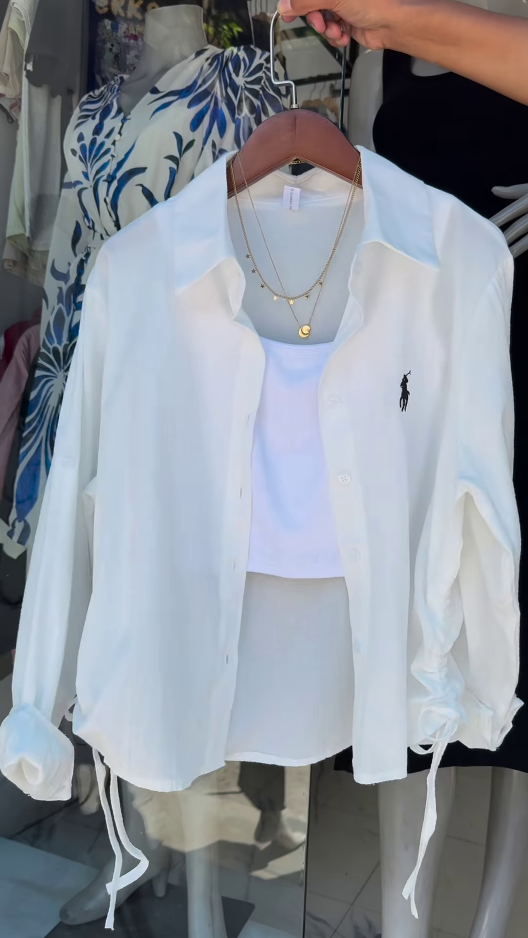 The Chic Layered Look: As seen in the inspiration, pair this shirt open over a simple white camisole or crop top. Add gold layered necklaces and high-waisted denim for an “off-duty model” look that is comfortable yet polished.