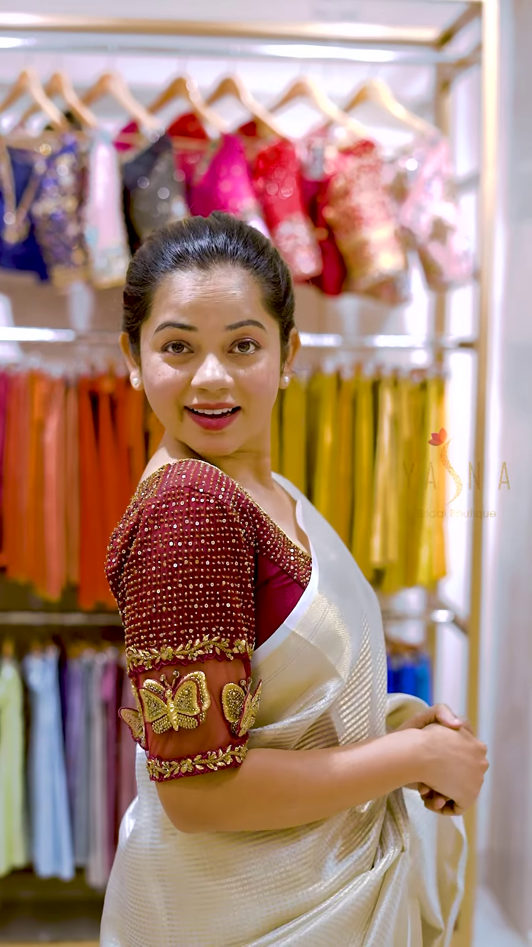 This maroon velvet blouse is an exceptional choice for grand wedding receptions, high-end gala events, or any occasion where you want to showcase a unique and artistic fashion sense. To style this look to perfection, we recommend pairing it with a simple gold, white, or matching maroon saree to allow the detailed butterfly work to be the star. Keep your jewelry focused on the ears—with statement gold earrings—and opt for a sleek updo or a high ponytail to ensure the back of the blouse is fully visible. This garment is more than just a blouse; it is a designer statement that bridges the gap between traditional Indian hand-work and modern sculptural fashion, ensuring you leave a lasting impression of sophisticated grace.