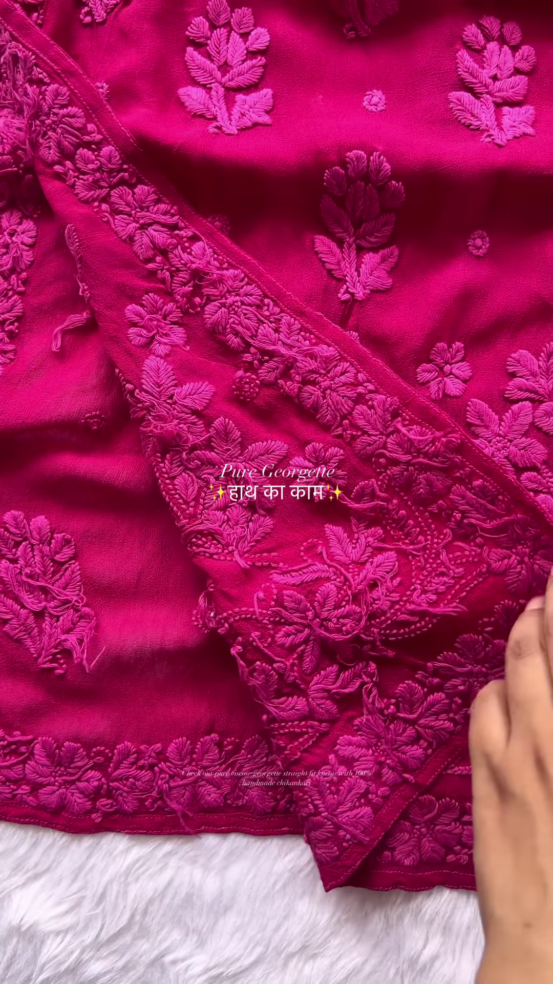 Immerse yourself in the world-renowned artistry of Lucknow with these breathtaking pure georgette Chikankari kurtas. Available in two regal jewel tones—deep fuchsia pink and majestic royal purple—these garments represent the pinnacle of Indian hand-embroidery. The fabric used is premium, high-density pure georgette, a material celebrated for its ethereal transparency, lightweight feel, and a fluid drape that creates a feminine and graceful silhouette. Georgette is the perfect canvas for heavy needlework because it remains breathable and soft against the skin even when covered in dense thread patterns.