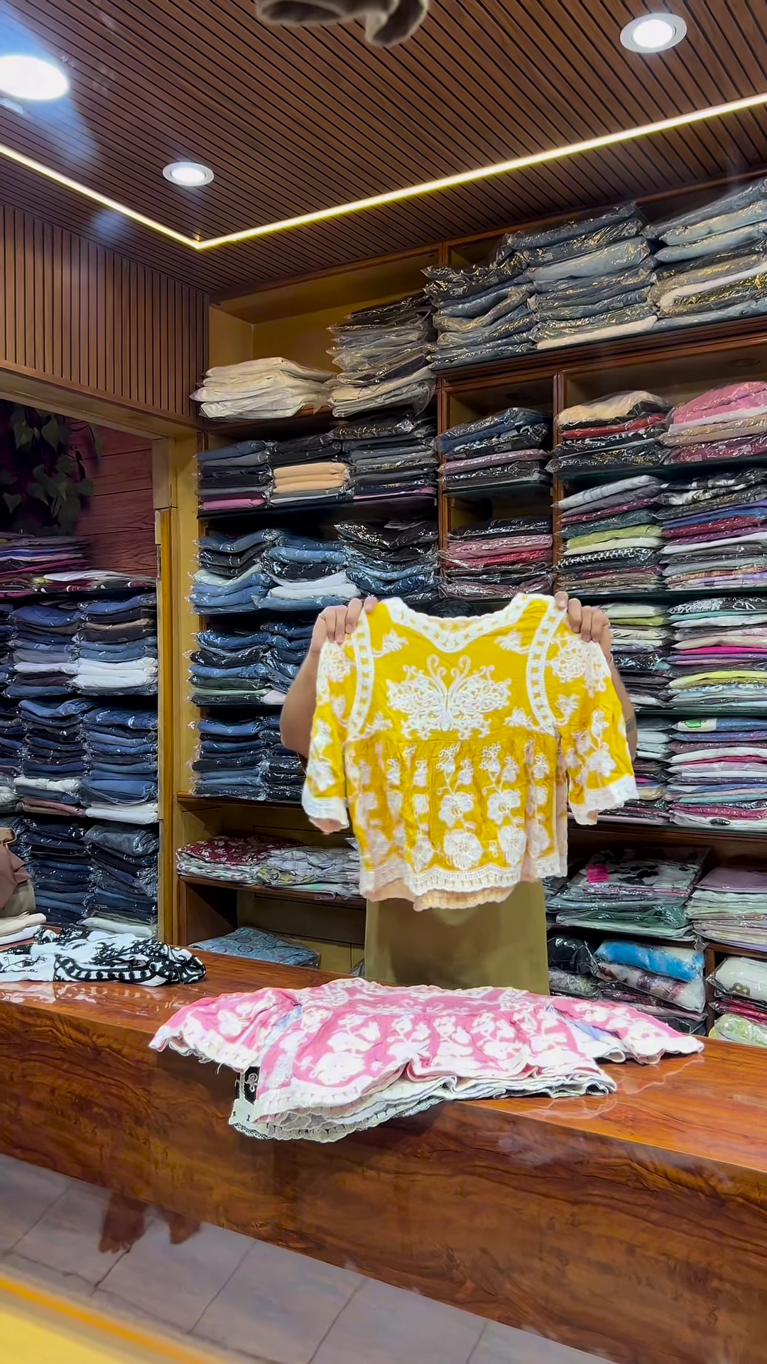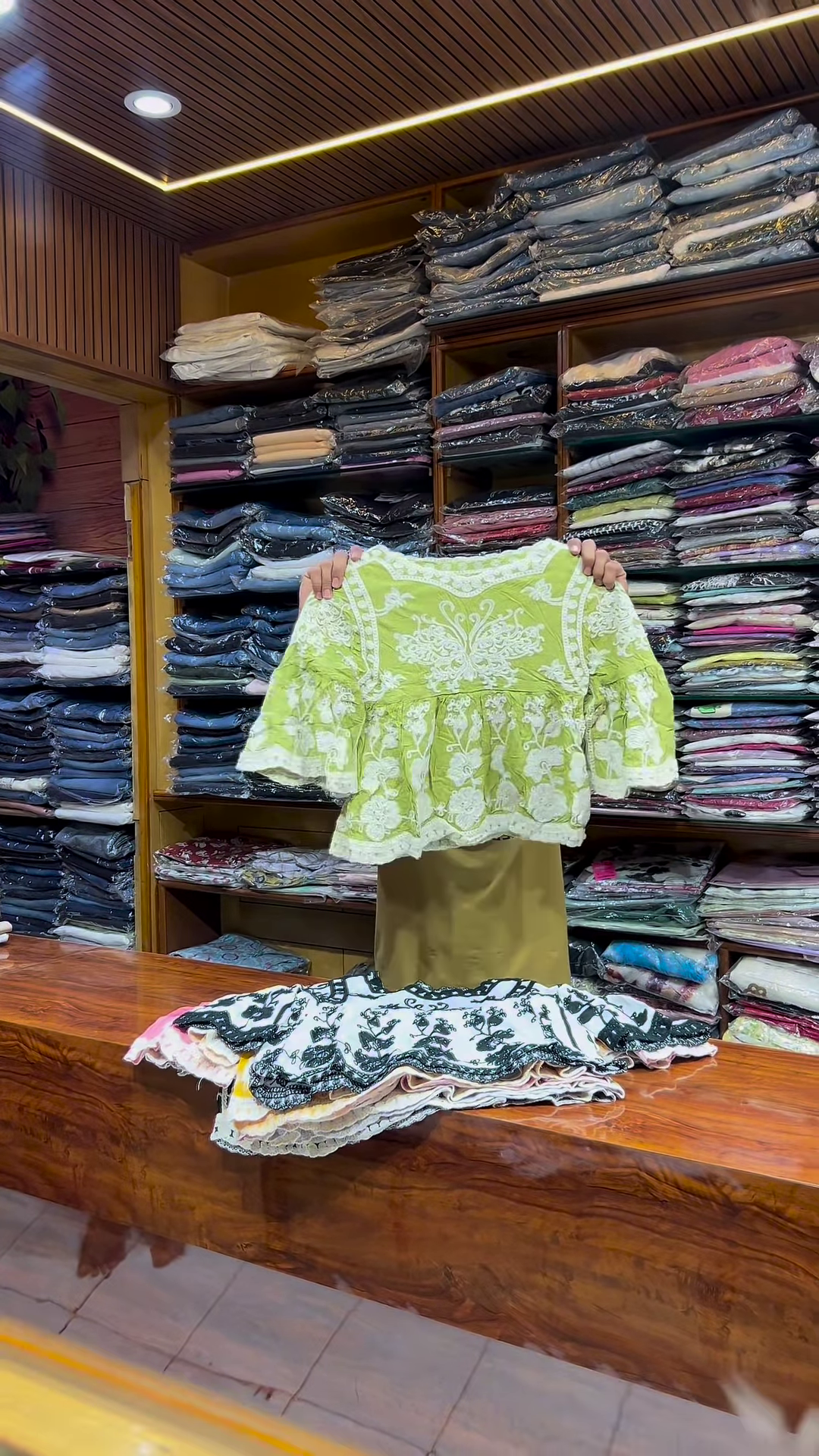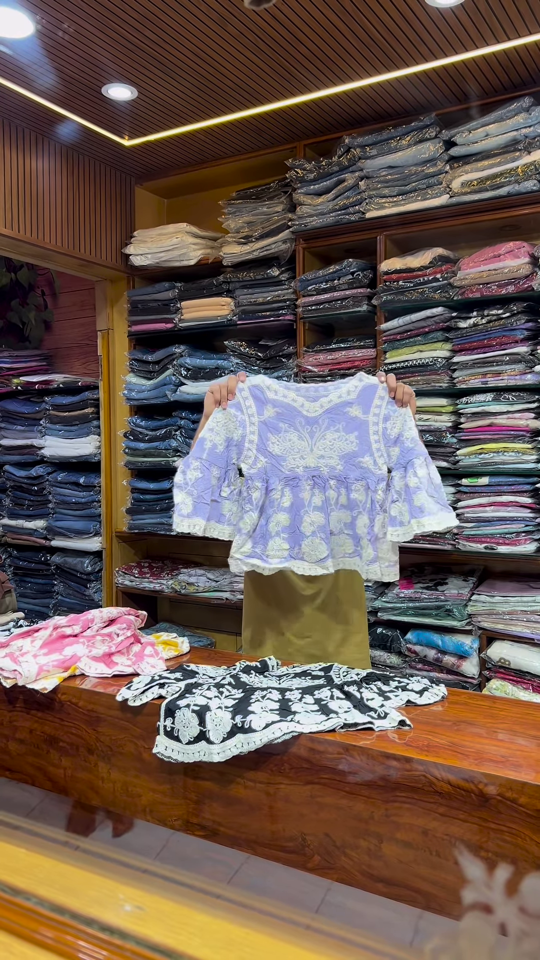 & Free ShippingAdd a soft and elegant touch to your ethnicwear or fusion collection with this pink and white embroidered long-sleeve top, designed for women who appreciate delicate craftsmanship and versatile styling. With its modest silhouette and intricate front detailing, this garment is ideal for boutique displays, festive catalogs, and everyday fashion campaigns.