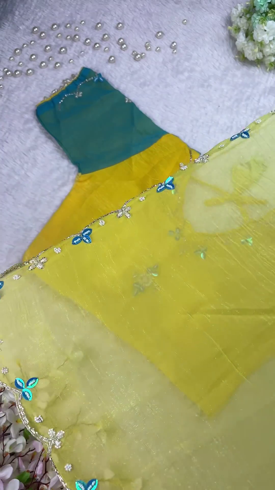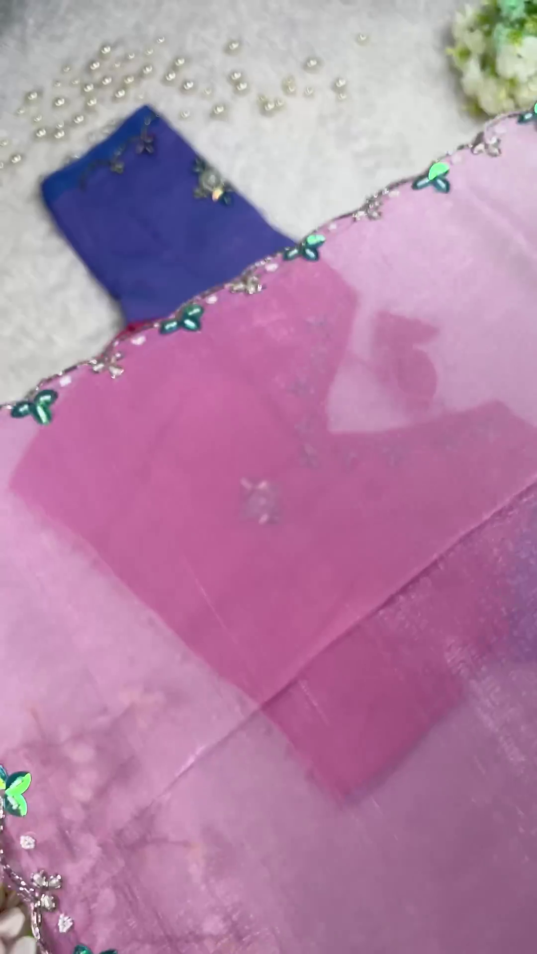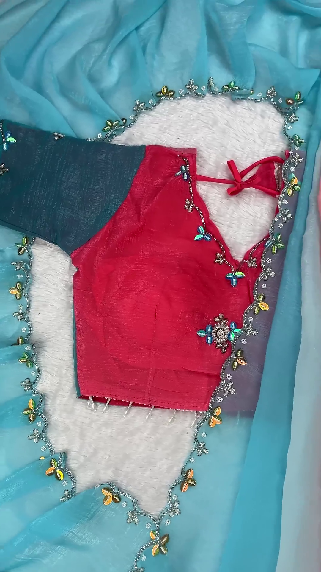 Radiant Sunset Coral Designer Blouse with Ombre Saree Set