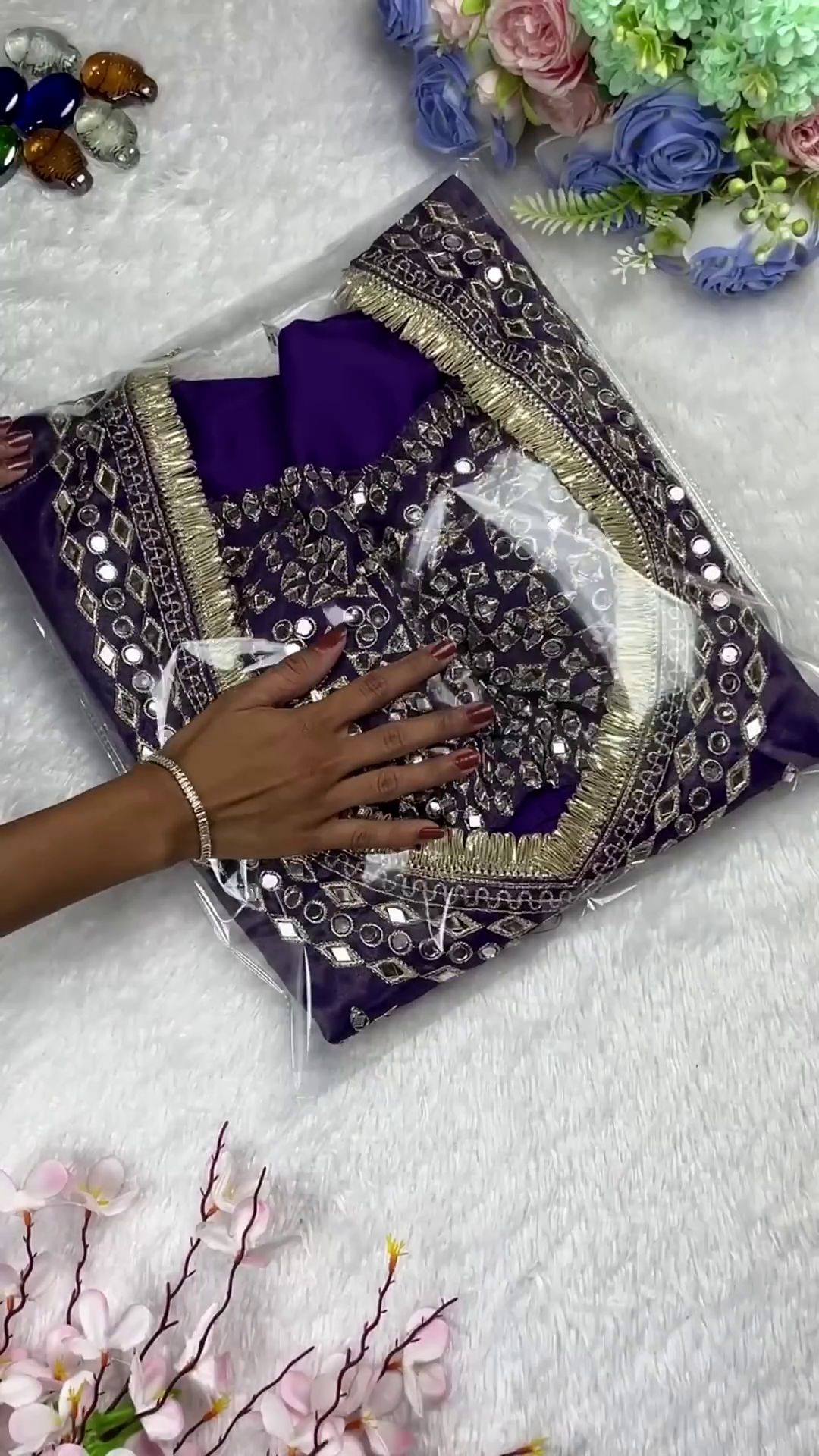 Regal Indigo Violet Mirror-Work Designer Kurti with Fringe Detailing